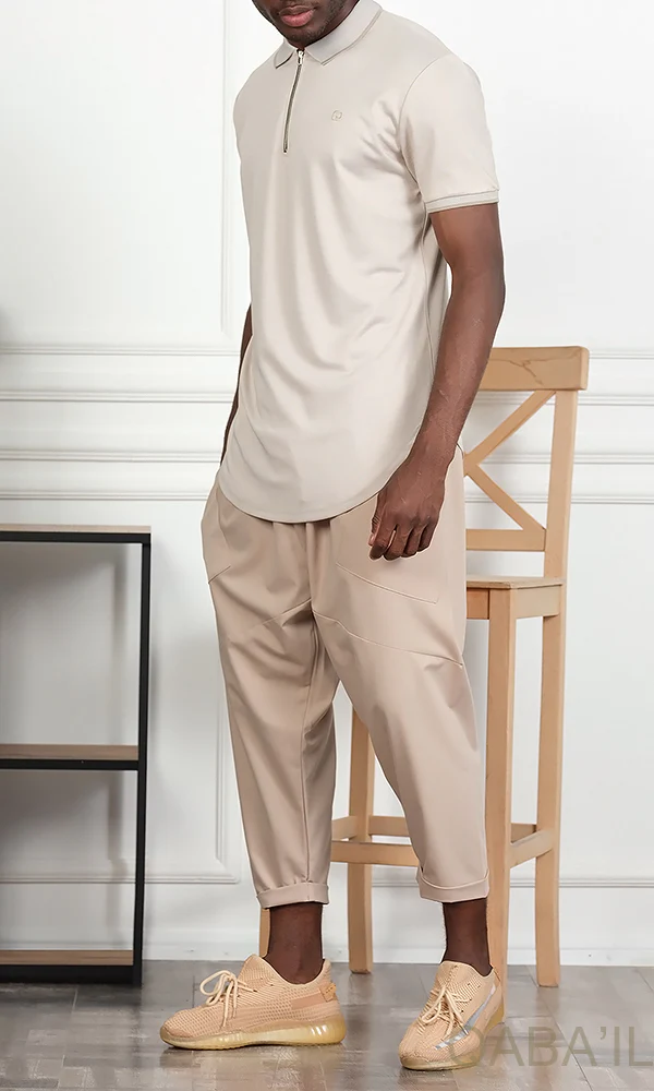 QL Relaxed Polo Zip Up in Beige